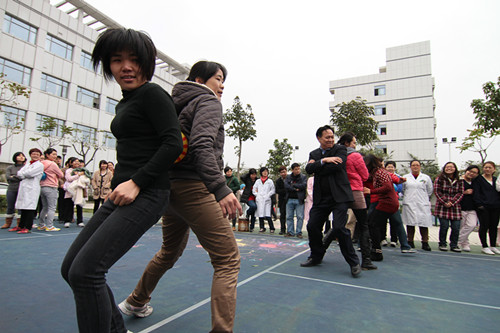 所有科室和部门的16支队伍在篮球场上参加了看谁圈得快、运乒乓球、运气球、袋鼠跳、蜈蚣走5个项目的比赛。比赛的趣味性和激烈性吸引了众多人的眼球,观众们都情不自禁地为参赛的运动员拍手叫好。运动场上气氛热烈、人声鼎沸,运动员们宣泄着自己的激情,观众们忘我的呐喊着……趣味运动会在意犹未尽中落下帷幕。赛后,运动会工作组统计了五项比赛各支队伍的总成绩,为获奖团队颁发了奖金。