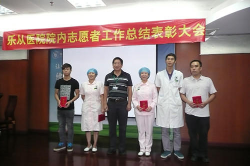 总结表彰会上,客服部副主任何汝秀宣读了《关于表彰优秀志愿者的决定》,陈书记为胡佑萍等9位院内优秀志愿者颁发了荣誉证书。