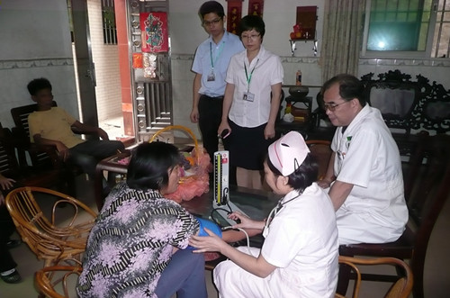 义诊期间,陈晓荣支委带领心血管专家尹学亮博士、糖尿病专科护士邹彩琼等专家上门探望了长期患病的2名贫困村民,专家为患病村民检查身体,调整治疗方案,指导家庭及自我照顾,并赠送了药品和慰问品。