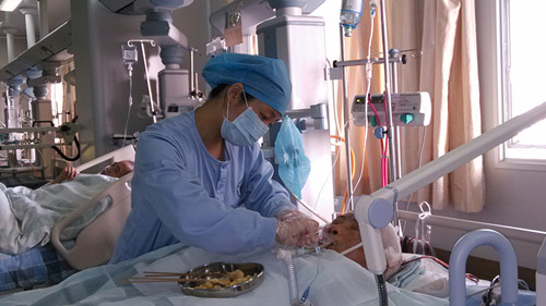 不断进取,勇于钻研。在专业知识和实践能力方面,她一直都未放慢自己前进的步伐,利用业余时间她完成了南方医科大学护理研究生进修班课程,并通过了同等学历《西医综合》科目的考试。她积极参与各项新技术、新业务的开展,2012年4月,她和科室其他几位高年资护士一起开展了床边连续性血液净化技术,还参与了床边纤支镜吸痰、肺灌洗术的护理配合,并熟练掌握,对于Ⅲ度及以上压疮患者,她积极为患者进行了VSD引流及湿性愈合的护理新方法,提高了压疮患者的护理水平。
