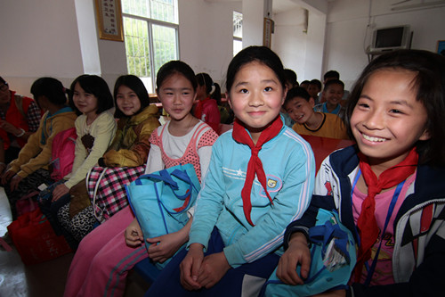 车刚到小坑镇中心希望小学,志愿者们迫不及待地将筹集到的1047册图书搬进早已在学校饭堂等候的老师们手里。看到一箱一箱书籍搬入,孩子们笑的很灿烂。“好开心又有新书看了,我最喜欢看《蓝色的兔耳朵草》。”来自六年级的邓芷琳小朋友兴致勃勃讲起书中内容,“图书讲的是主人为了给虎皮猫治病,历经千辛万苦找蓝色的兔耳朵草,很勇敢很感人。”邓芷琳说她最喜欢里面的一句话是:只要心中有爱,奇迹就一定会出现。随后,众多小朋友们为志愿者表演了《弟子规》等多首古诗词朗诵。