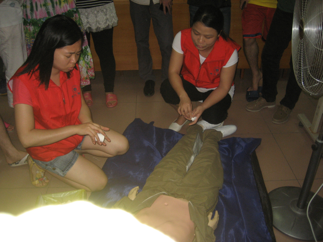 急诊科护士长、党员志愿者曾秀芹和她的两名拍档,采用多媒体授课及实际操作相结合的方式,从现场急救的目的、程序、原则,重点注意事项及技能操作步骤等方面讲授了徒手心肺复苏和创伤急救四项技术:止血、包扎、骨折固定、搬运护送的处理。培训活动中,曾秀芹及其团队以生动、专业的讲解,结合模拟人操作,为大墩村党员志愿者系统演示了各项急救技术的完整流程,并一边手把手教他们操作,一边讲授理论知识。
