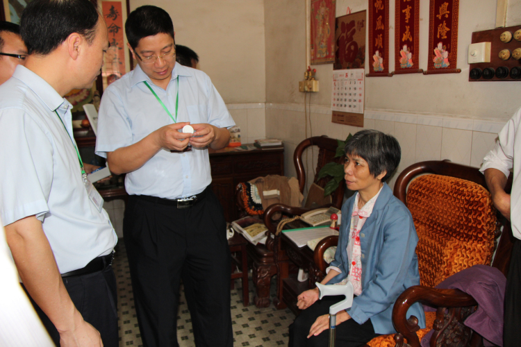 的陈启康院长更是亲自带着医护人员上门,为一位长期我卧病在床的村民进行详细的身体检查,“你要坚持做康复锻炼,坚强积极的面对病魔。”随后,还为这位患者送上了药物和水果篮。