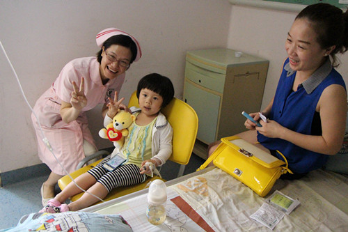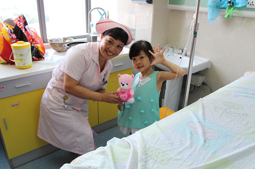“以前看到医生护士,孩子便条件反射,以为要打针吃药,所以大哭大闹,现在怎么哈哈大笑啦?”患儿的妈妈打趣地说。小朋友更是大方地将自己的“初吻”送给了我们的护士。