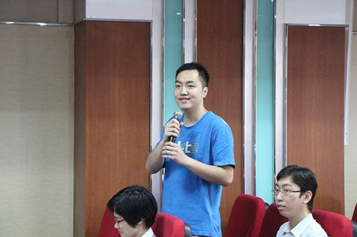 随后,陈启康院长带来了以《致青春》为题的经验分享,他通过三个问题:“人为什么活着、穷人为什么会穷、我们的时间都去哪了?”与同事们互动,亲切交流,现场人员在轻松愉快的气氛中积极表达出自己的观点和想法。陈院长通过国内外的例子,深入浅出地结合当前社会环境总结出三个结论:一要树立正确的人生观,回馈社会;二要定好人生目标,扬帆奋进;三要把握青春,实现自我。陈院长最后还勉励青年团员,只要“有梦想,有追求,有奋斗,一切都有可能”,用坚实的脚步踏出精彩的人生!