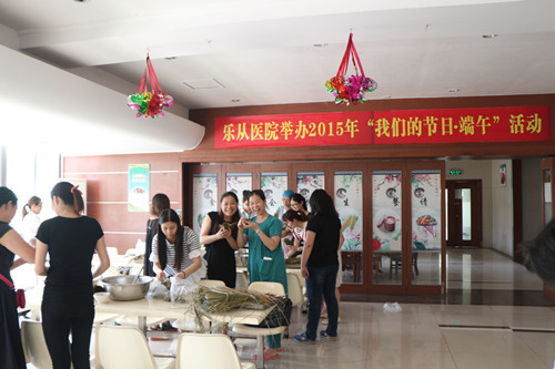 活动开始后,大家都积极的参与其中,更有员工携带自己的小孩、家属一起感受包粽子活动的乐趣。妇产科的罗叶新护士手工相当娴熟,在短短的十分钟,就已经完成了自己计划的20个粽子,一旁正在研究如何包粽子的女员工,纷纷向罗叶新护士学习、取经。大家一边精心的设计自己粽子的外观,一边在玩笑中讨论粽子的各类特色性状。参加活动的小朋友认真的向“老师们”提问,自己动手操作,有小朋友额参与,今天的活动更显朝气。短短的2个小时,大家在欢笑中,完成自己的战利品,宣传拓展部的陈文娟同事并将自己第一个粽子送给同事,将快乐和成果互相传递与分享。