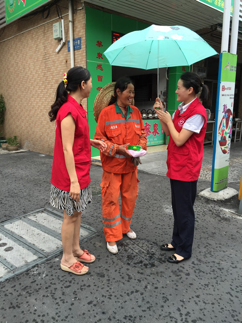 今年夏天,多个城市“爆表”——多地创下了几十年、上百年不遇的高温天气,然而乐从镇的环境守护者——环卫工人却顶着烈日的炙烤,用自己的实际行动守护着这片土地,使得乐从的天空越来越蓝,河水越来越清透……为此,安博体育 乐仁志愿服务队积极响应镇党员志愿志愿服务队的号召,发动志愿者参与“秋风传情送爱心”志愿活动,上街寻找辛勤工作的环卫工人,为其送上清凉饮料、防中暑药物、生活用品及志愿者们真诚的感谢及社会各界的关怀。