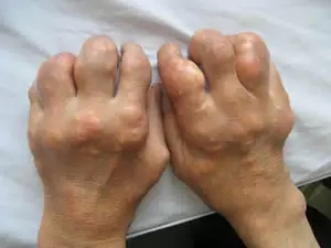 2、经内科保守治疗,服用药物后痛风结石未能消失,并形成掌指关节屈伸活动受限者;