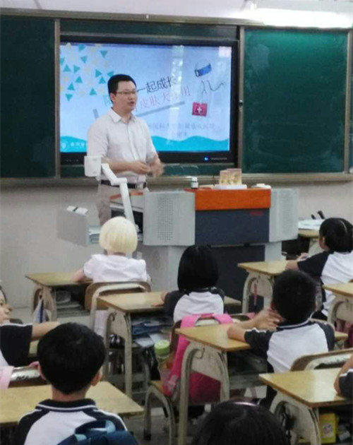 7月1日,广州医科大学附属安博体育 皮肤科余南生主任应邀到乐从小学,为二年级3班的全体师生讲授了一节主题为“好皮肤大作用”的皮肤医学常识课。