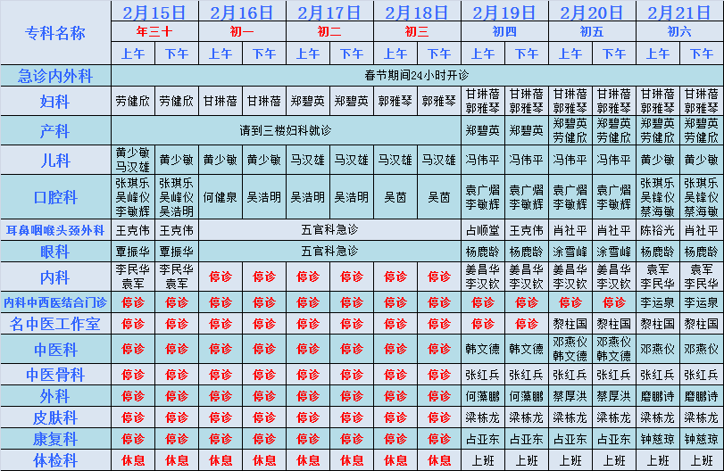根据上级文件精神,结合安博体育实际,2018年春节放假时间为2月15日(除夕)至2月21日(年初六),共七天。放假期间出诊安排如下: