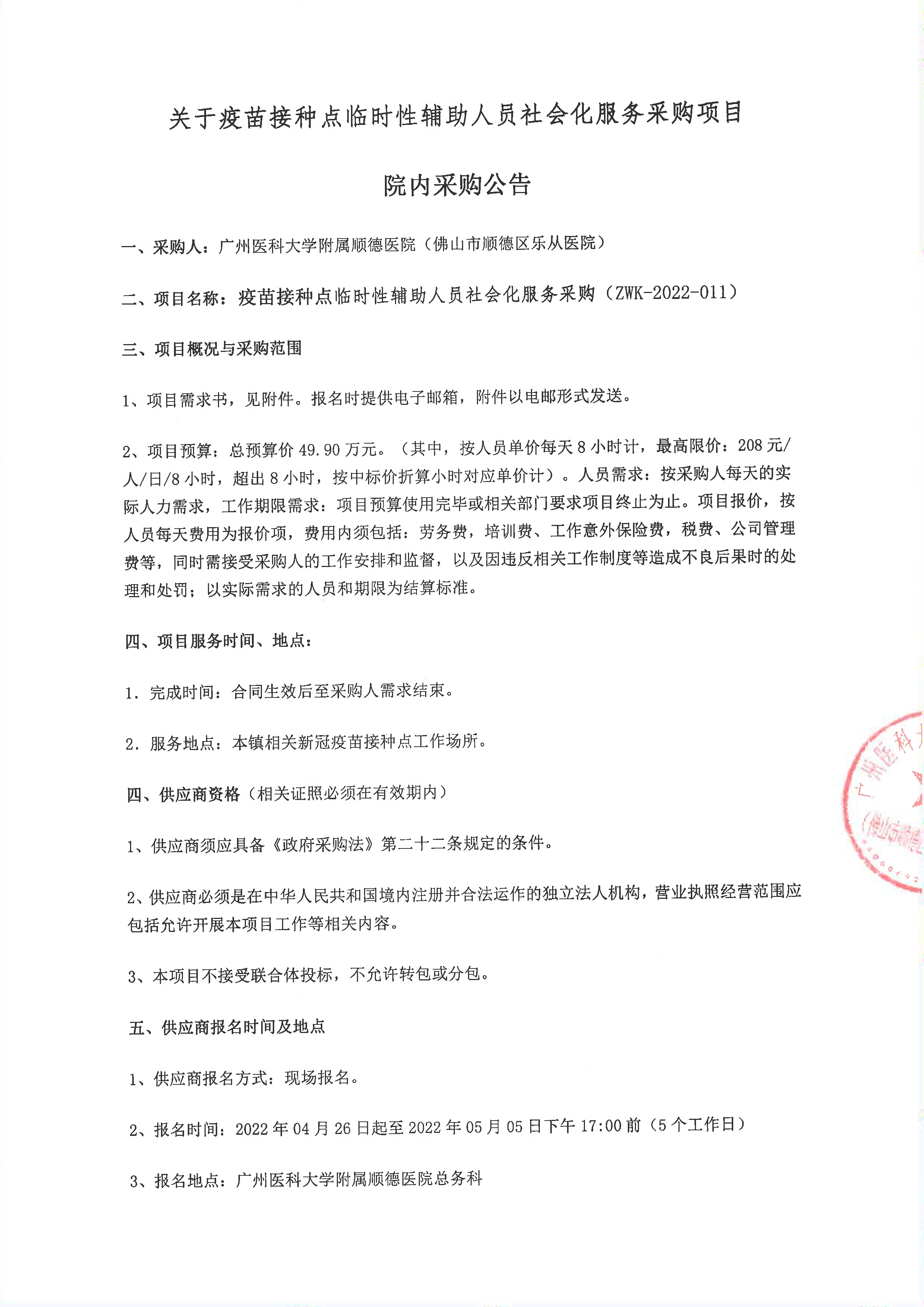 上一篇: 关于疫情防控类工作临时性辅助人员社会化服务采购项目院内采购公告