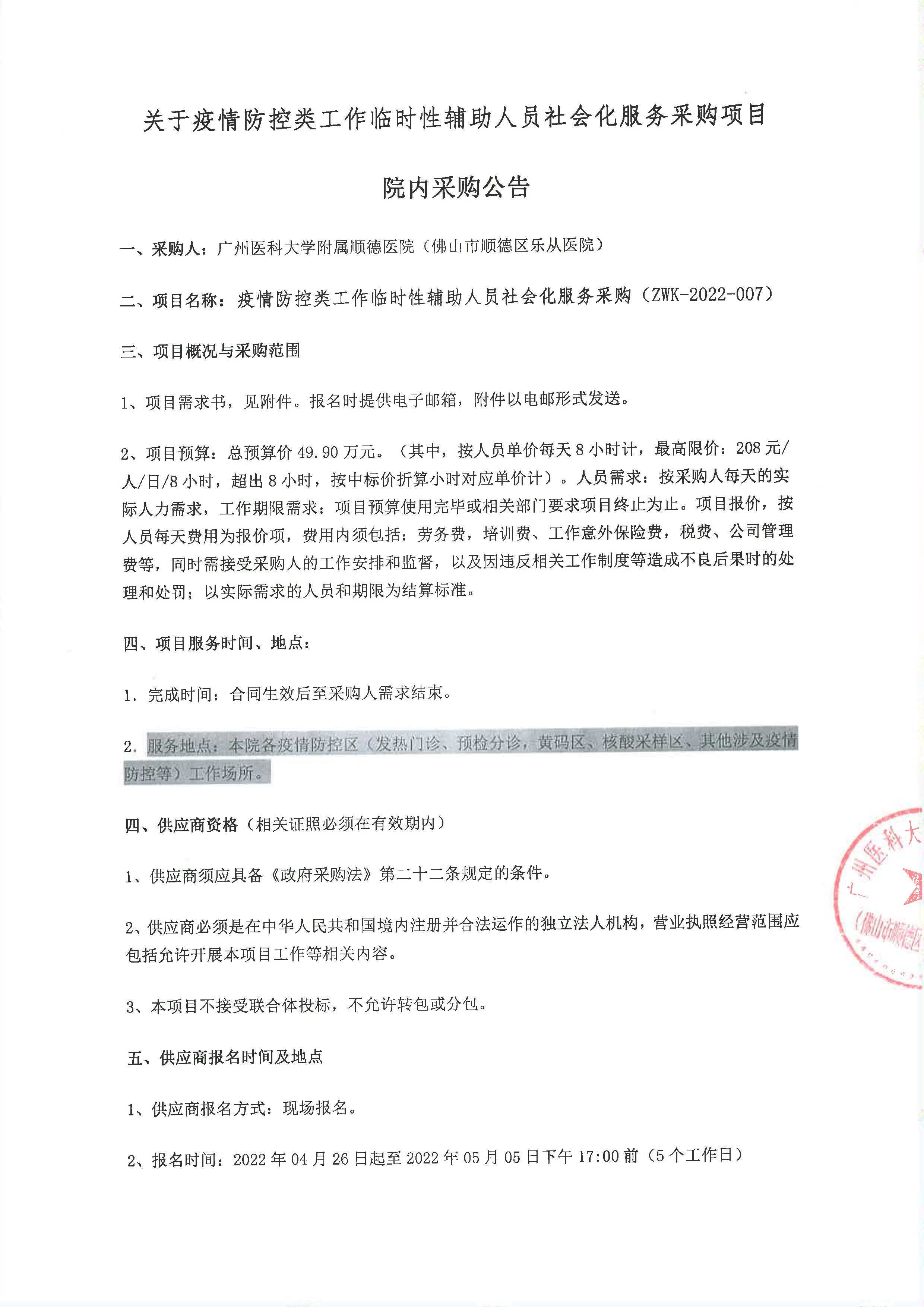 下一篇: 关于疫苗接种点临时性辅助人员社会化服务采购项目院内采购公告