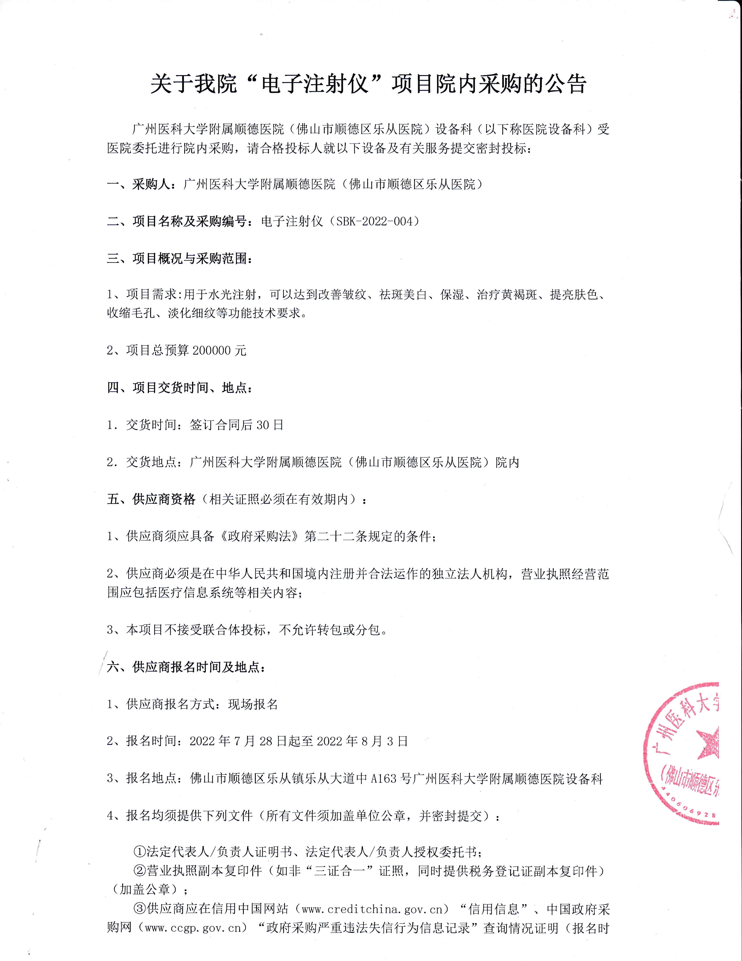 上一篇: 电子注射仪(SBK-2022-004) 采购结果公告
