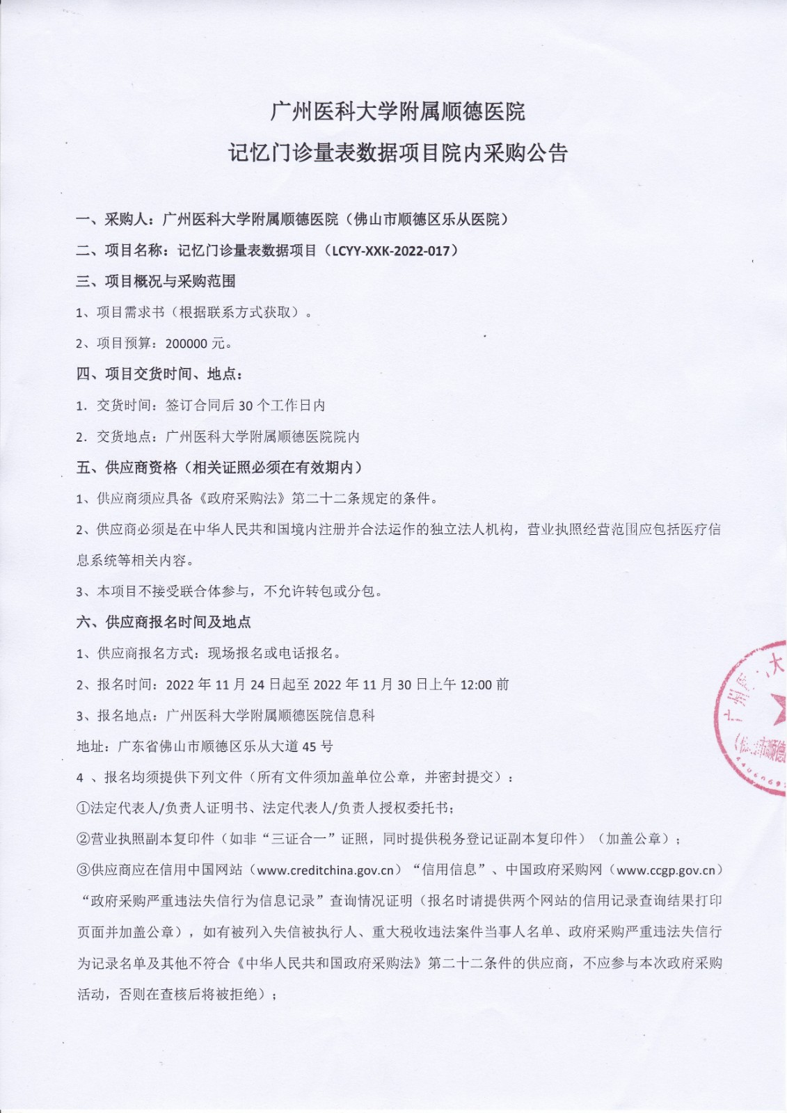 下一篇: 记忆门诊量表数据项目采购失败公告