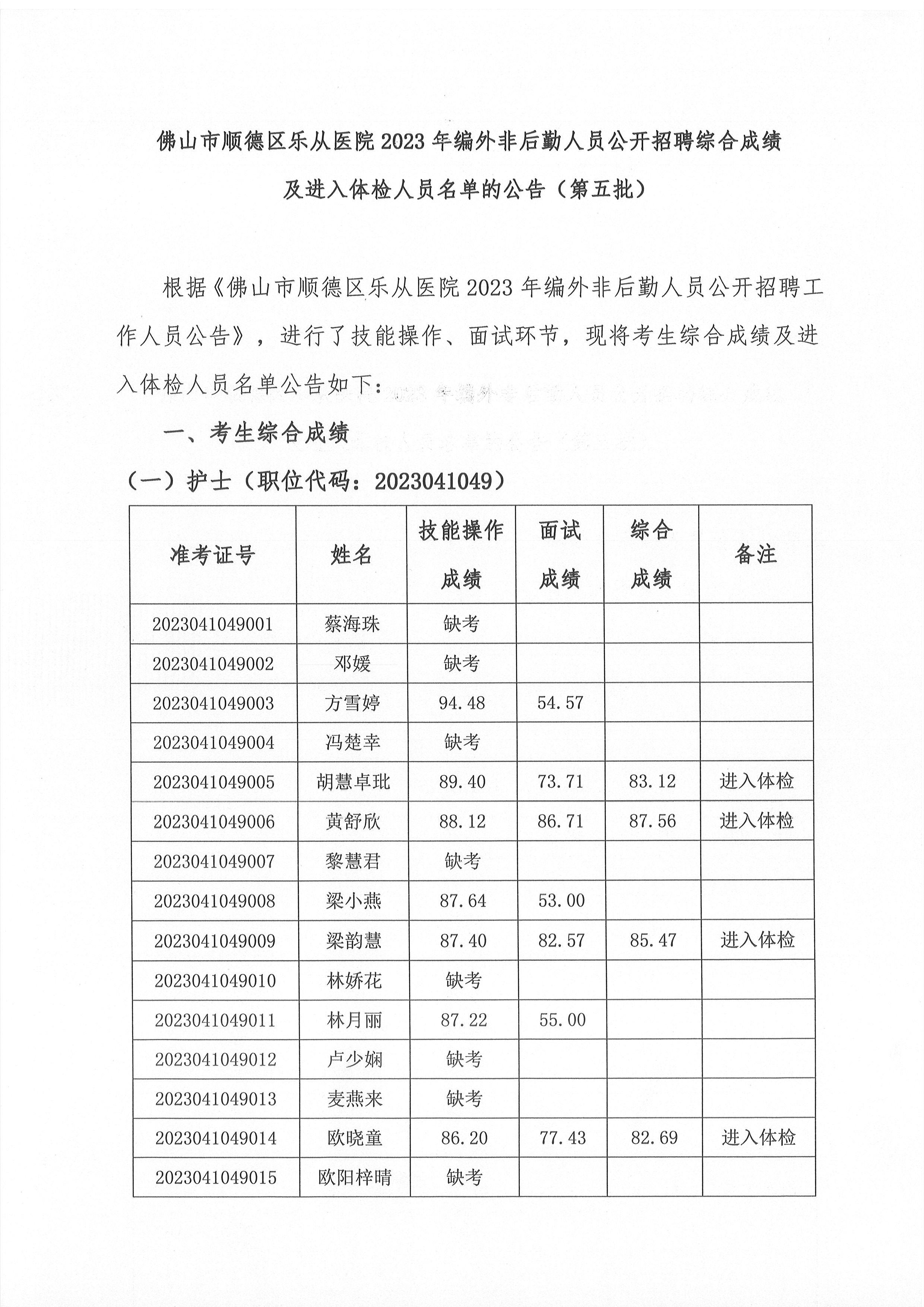 下一篇: 2023年编外非后勤人员公开招聘综合成绩及进入体检人员名单的公告(第三批)