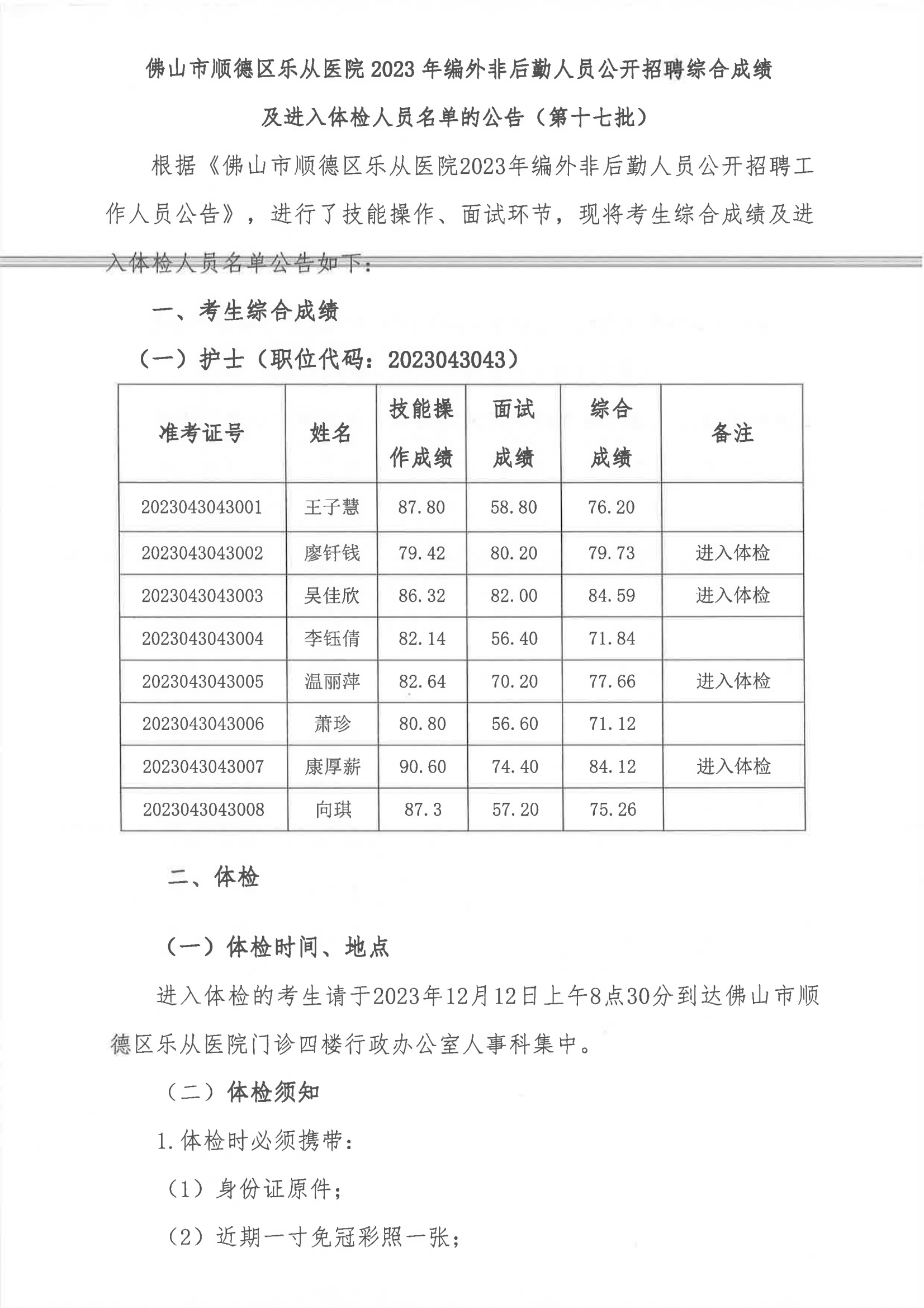 上一篇: 关于乐从社区卫生服务中心2023年招聘编制外卫技工作人员的公告