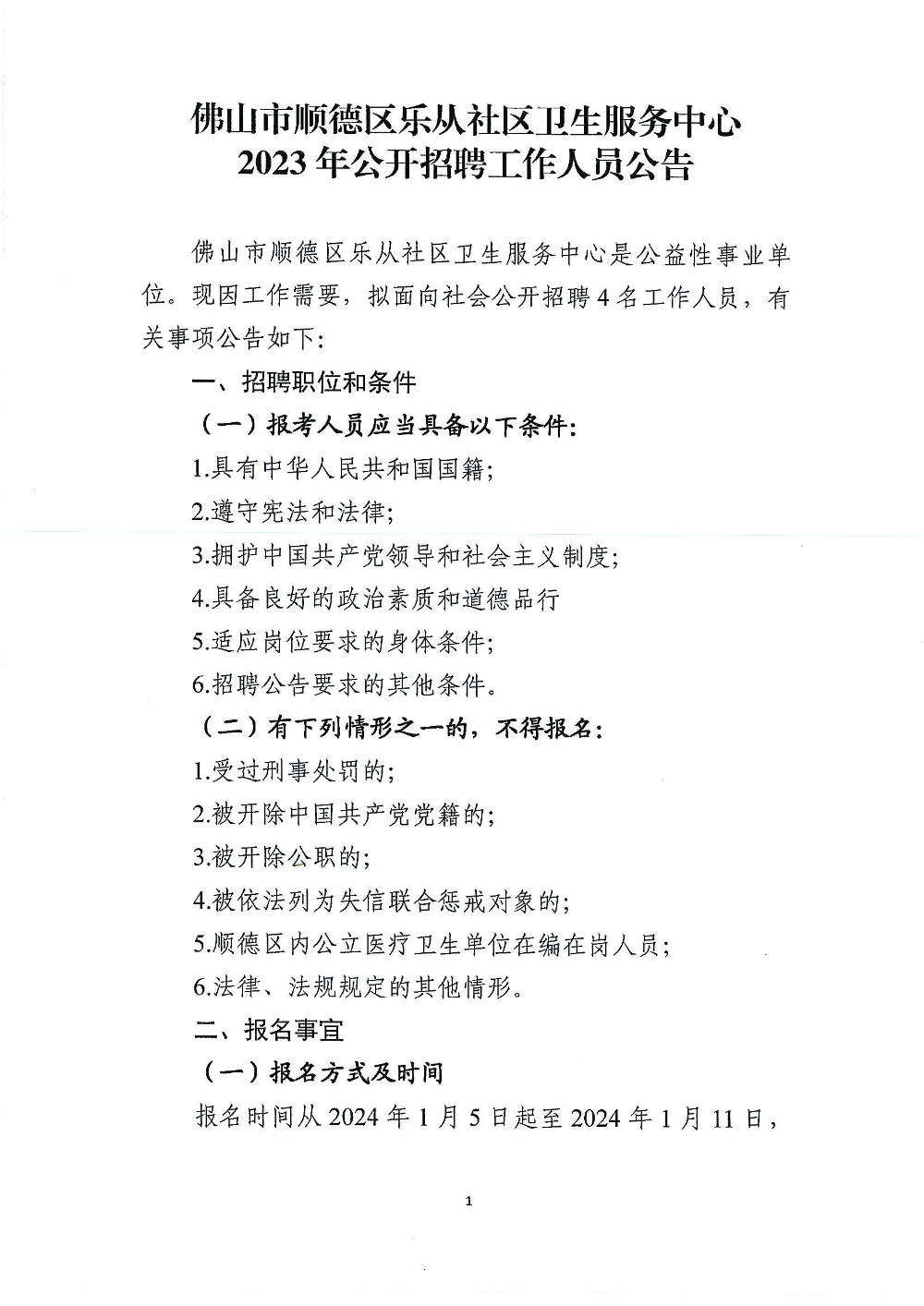 附件1:佛山市顺德区乐从社区卫生服务中心2023年公开招聘工作人员职位表.xls