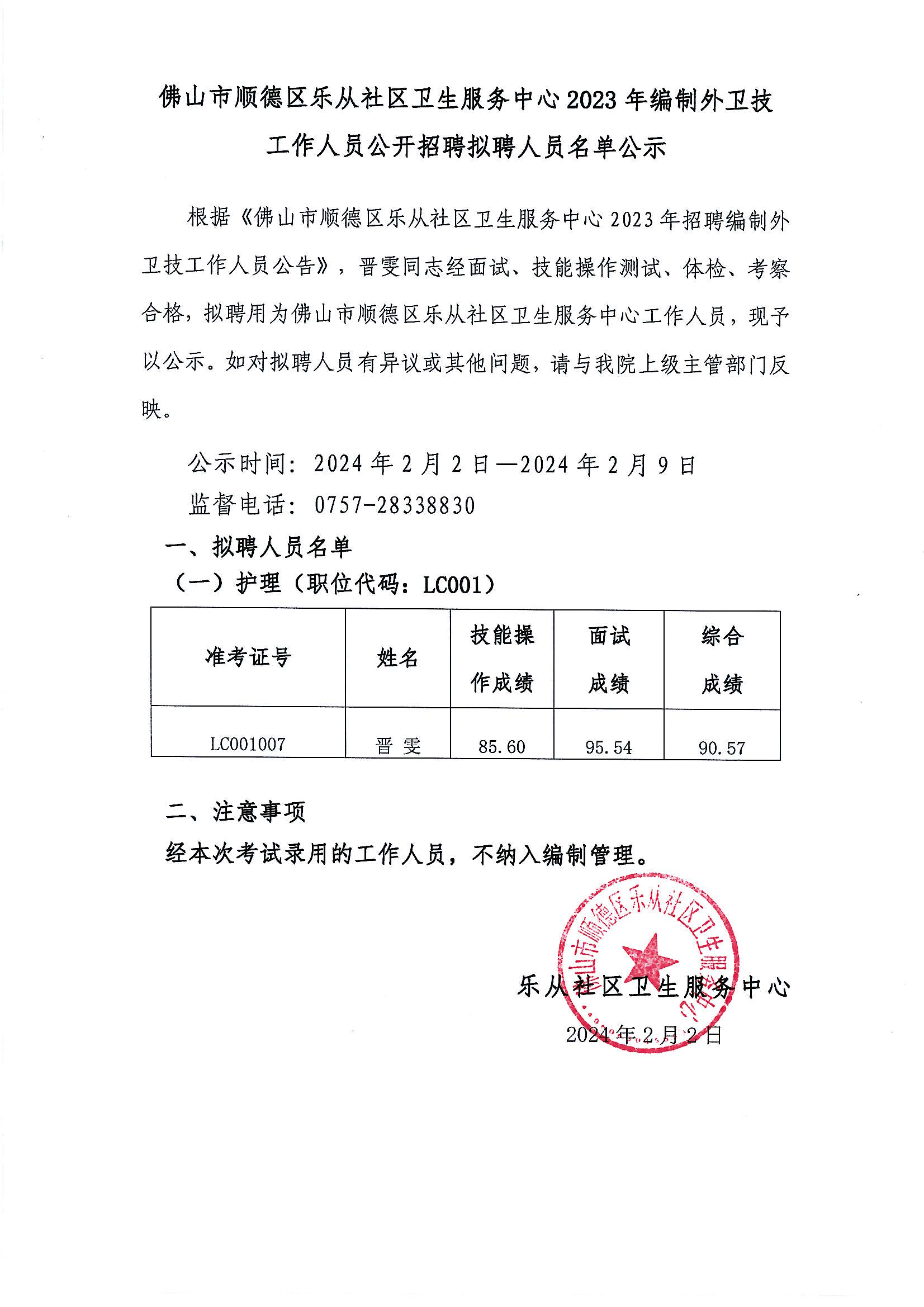上一篇: 乐从社区卫生服务中心2023年招聘工作人员笔试成绩、资格复审、面试公告