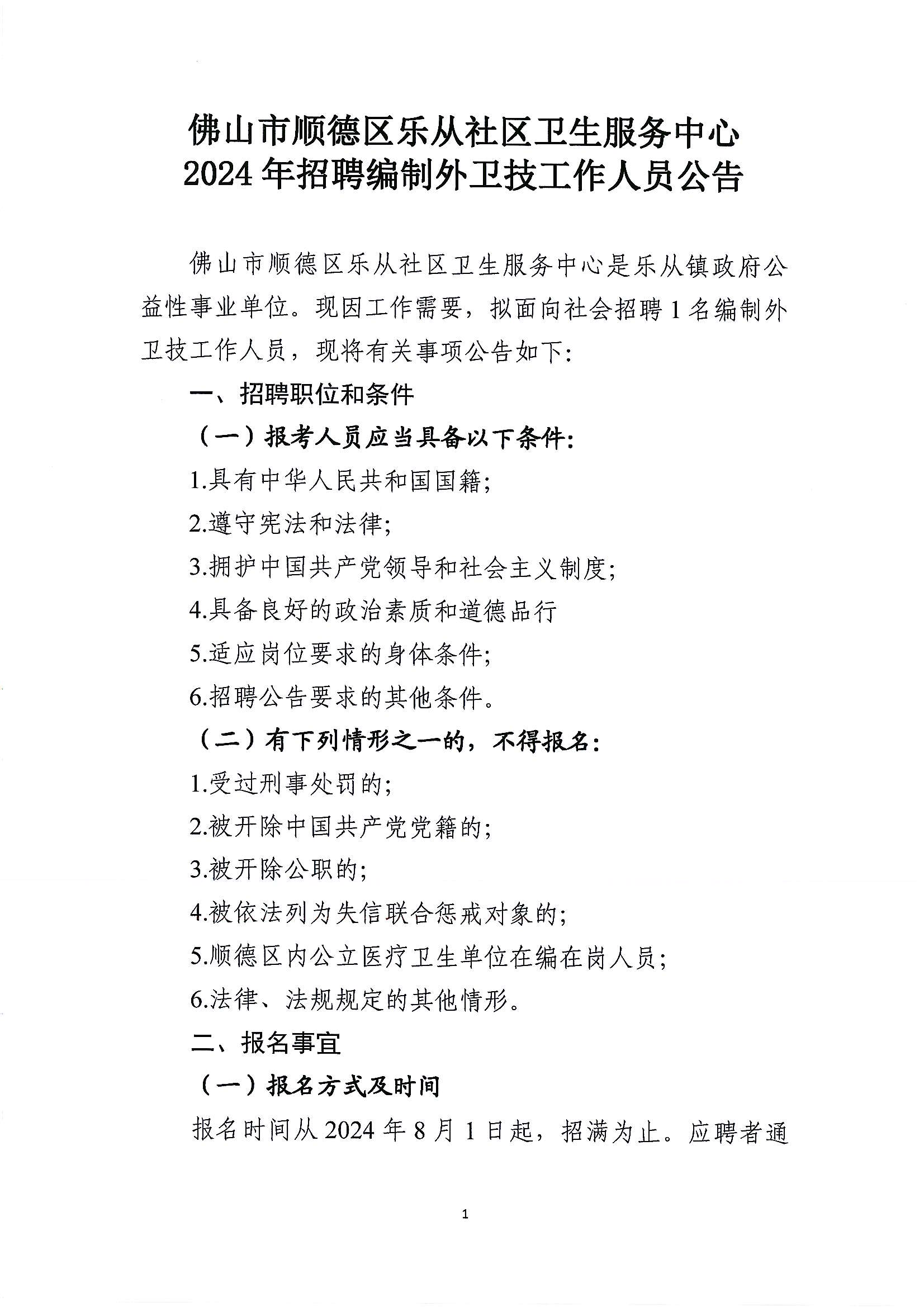 附件1:佛山市顺德区乐从社区卫生服务中心2024年招聘编制外卫技工作人员职位表.xlsx