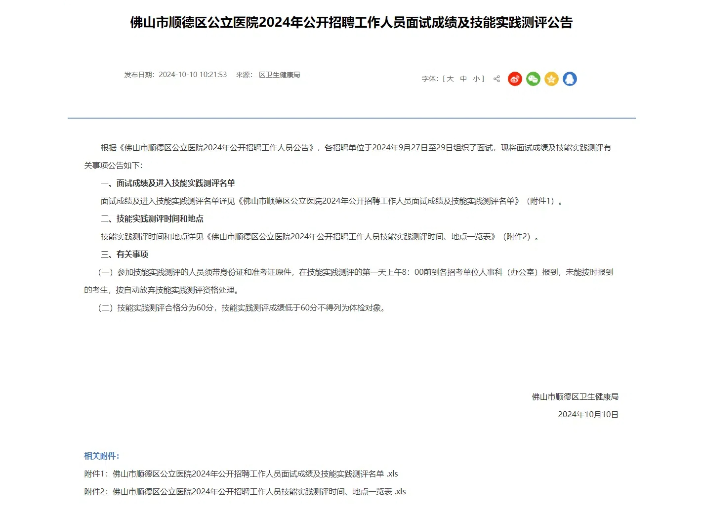 附件1:佛山市顺德区公立安博体育 2024年公开招聘工作人员面试成绩及技能实践测评名单.xls
