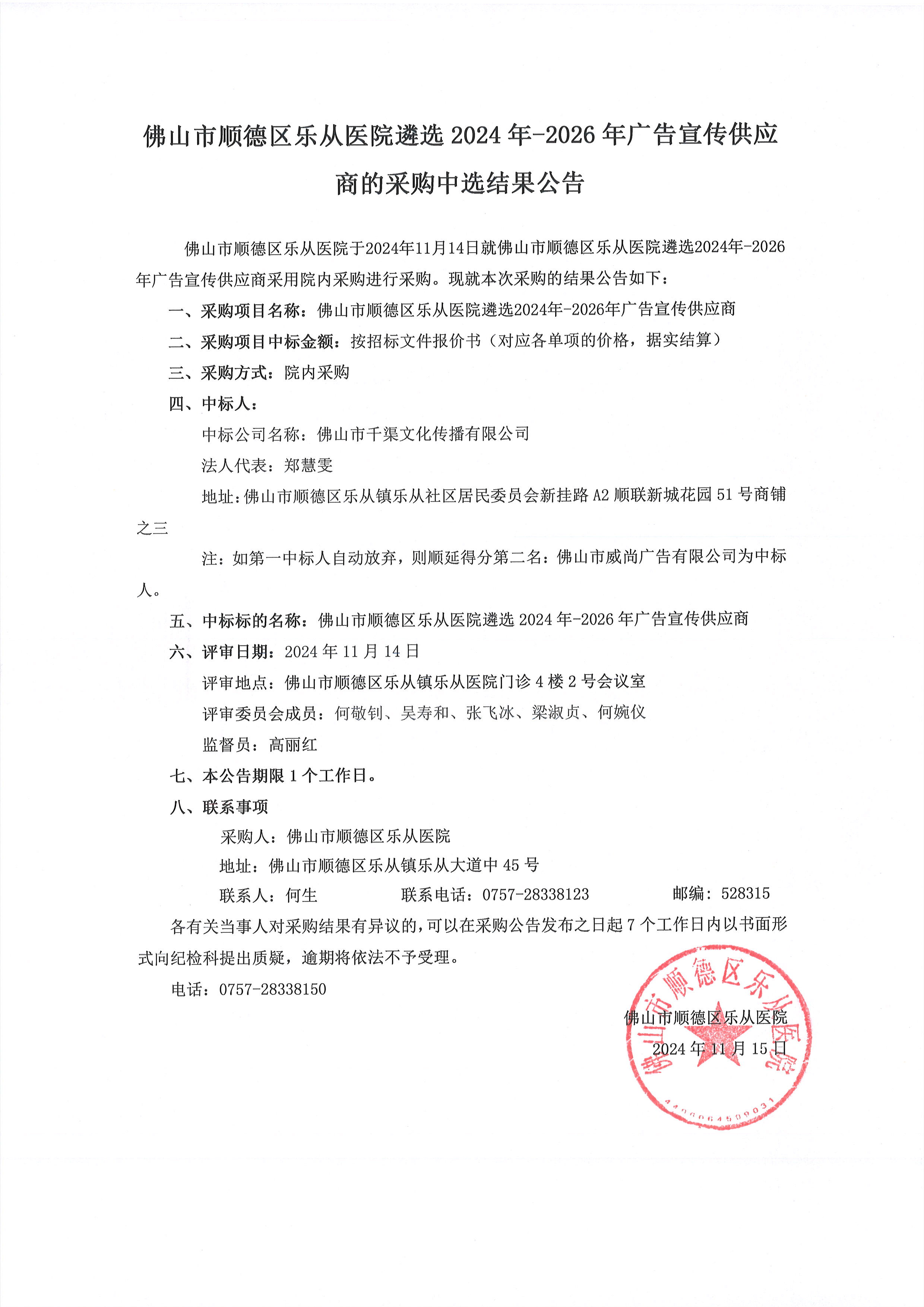 下一篇: 乐从社区卫生服务中心2024年公卫后勤物品采购项目(SQHQ-2024-012)的采购中选结果公…