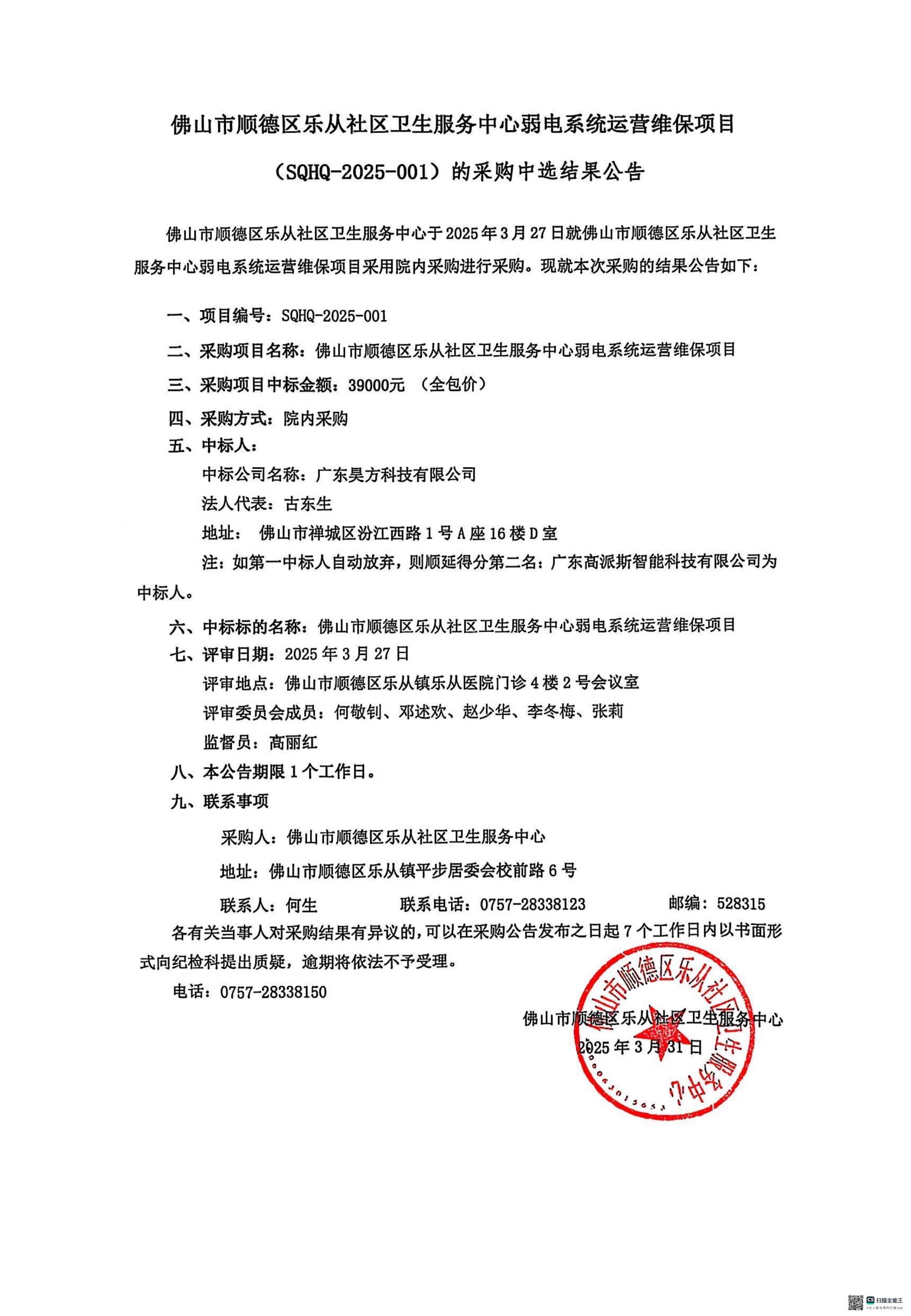 上一篇: 佛山市顺德区乐从社区卫生服务中心污水处理站日常运维服务项目(SQHQ-2025-002)的采…