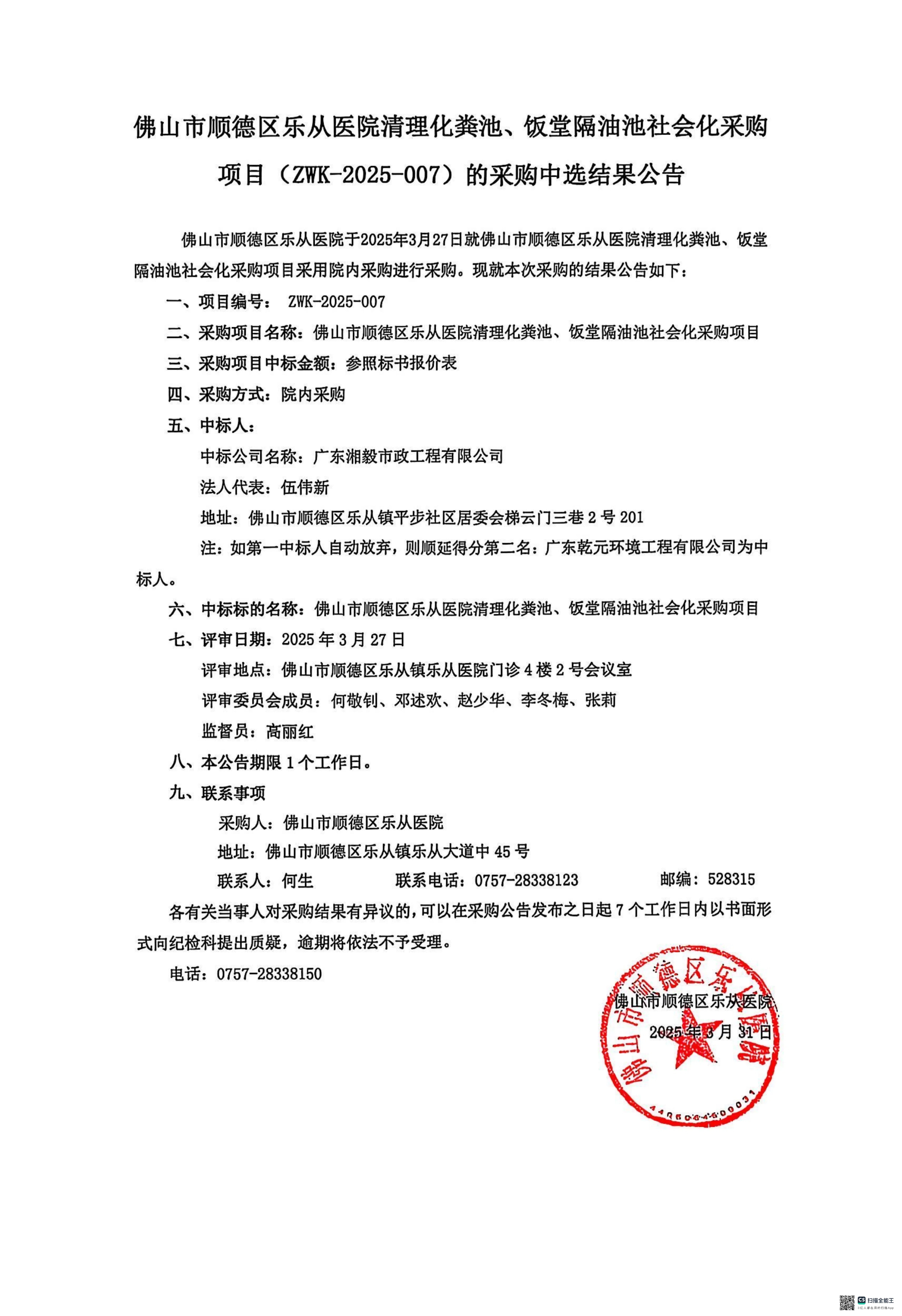下一篇: 佛山市顺德区乐从社区卫生服务中心污水处理站日常运维服务项目(SQHQ-2025-002)的采…