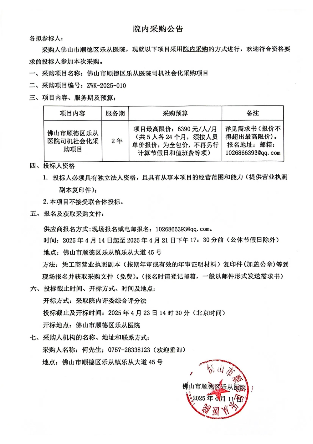 上一篇: 佛山市顺德区乐从社区卫生服务中心登革热疫情防控、监测辅助服务的院内采购公告