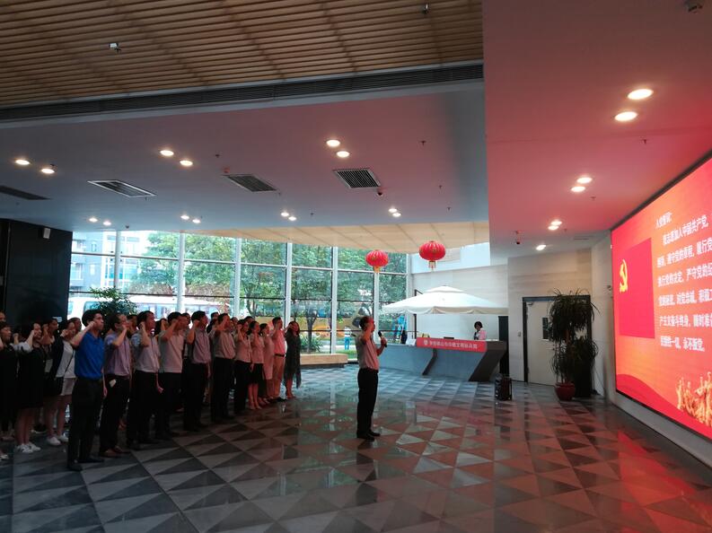 活动上,陈永韶书记带领党员面对鲜红的党旗,高举坚定有力的右拳,铿锵有力诵读心中无悔的誓词:“我志愿加入中国共产党,拥护党的纲领,遵守党的章程,履行党员义务,执行党的决定,严守党的纪律,保守党的秘密,对党忠诚,积极工作,为共产主义奋斗终身,随时准备为党和人民牺牲一切,永不叛党。”