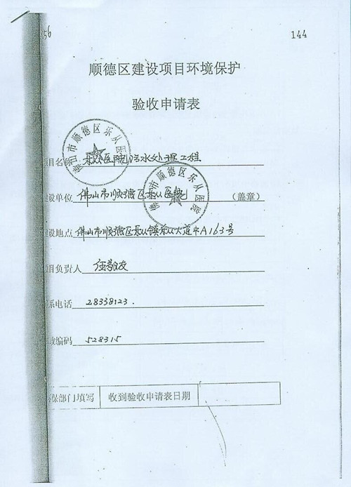 顺德区建设项目环境保护验收申请表