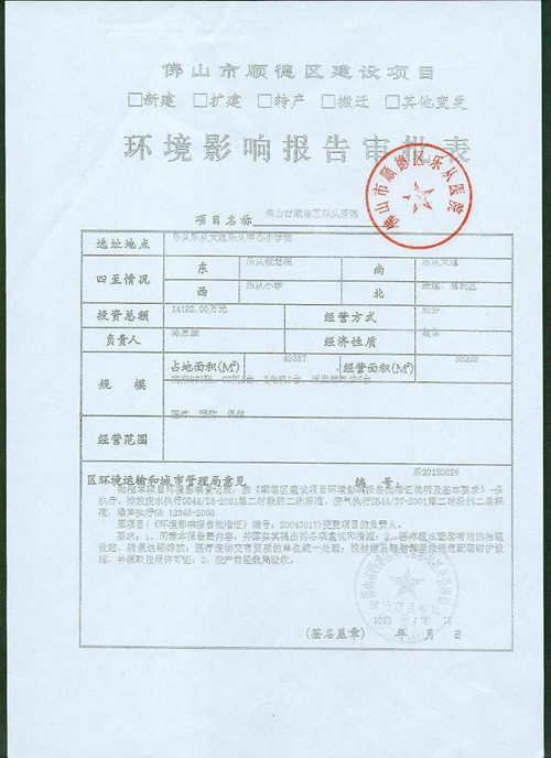 环境影响报告审批表