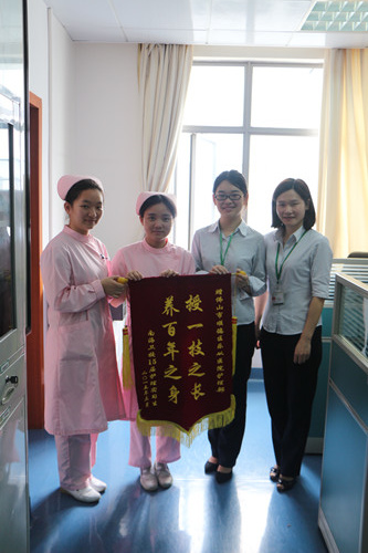 2015-04-08近日,南海区卫生职业技术学校2012届实习生将一面印有“授一技之长,养百年之身”的锦旗送到了广州医科大学附属安博体育 护理部,对为其提供优秀的教导及良好的实习环境以示感谢。 去年6月份,广州医科大学附属乐从…