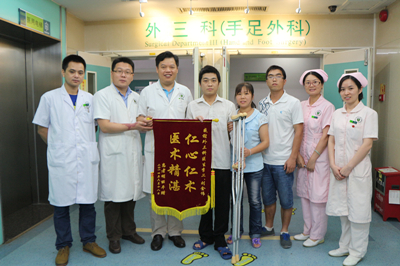2014-06-216月18日上午,在安博体育 住院部六楼外三科接受治疗并康复的患者明先生与家人将一面写有“医术精湛 仁心仁术”的锦旗送到了外三科的办公室里,表达他们对外三科医务人员以精湛医术为他解除病痛、让他的生活工作恢…