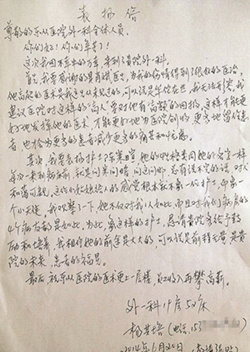 2014-06-236月20日一大早,杨其培来到安博体育 六楼外一科护士站热情地将一封亲笔写的表扬信交给护士长刘碧玉,并要求护士长一定要将表扬信张贴出来。到底是什么原因让杨其培连夜写了一封表扬信呢? 据了解,6月17日上午,…
